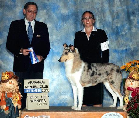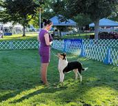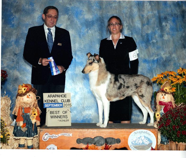 3rd place in 6-9 month puppy class at CCA National 2012, a 5 point major, a 3 point major