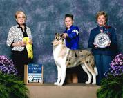 3rd place in 6-9 month puppy class at CCA National 2012, a 5 point major, a 3 point major